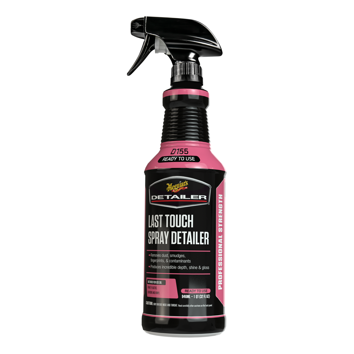 nEl detallista en aerosol D155 Last Touch de Meguiar’s es el detallista en aerosol perfecto para cualquiera que detalla automóviles en casa, en el costado o a tiempo completo para eliminar contaminantes frescos y obtener una profundidad, brillo y brillo increíbles. Este spray detallista profesional simplemente se rocía y se limpia para mejorar el brillo y la protección. Nuestra mezcla única de agentes lubricantes poliméricos elimina suavemente el polvo, las huellas dactilares, las manchas y otros contaminantes para dejar un brillo impecable en la sala de exposición. Además, dado que Last Touch Spray Detailer ya está prediluido a 1:1, es el lubricante perfecto para usar con Professional Detailing Clay C2000 y C2100 de Meguiar.